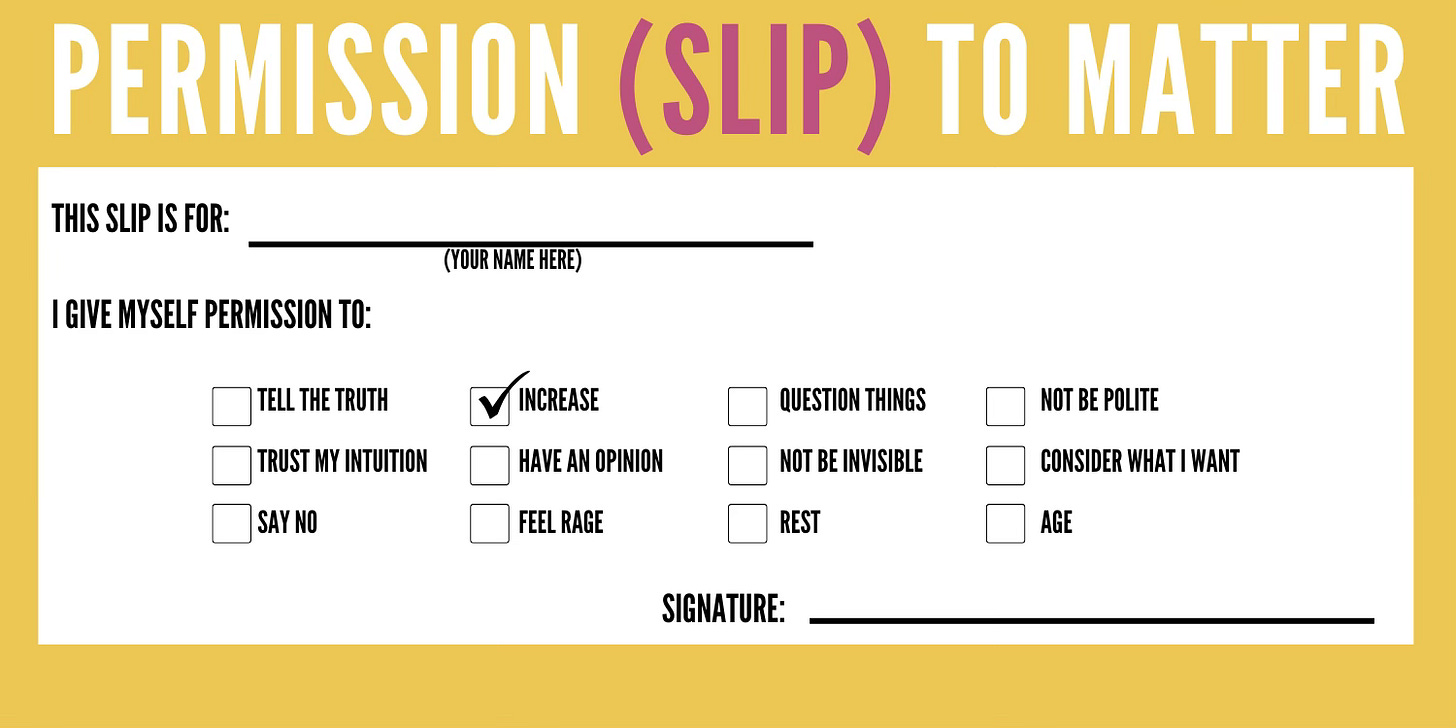Friends, just a reminder: The pen is in your hand, as securely as your God-given authority and agency runs through your veins. It’s time to write your own permission slips, and story.3